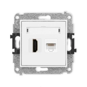 MINI Mechanizm gniazda pojedynczego HDMI 2.0 + gniazda komp. poj. 1xRJ45, kat. 5e, 8‑stykowy biały mat 25MGHK