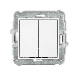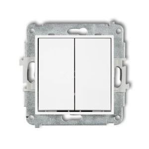 MINI Mechanizm łącznika jednobiegunowego ze schodowym (dwa klawisze bez piktogramów, osobne zasilanie) biały MWP‑10.21