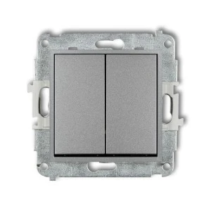 MINI Mechanizm łącznika jednobiegunowego ze schodowym (dwa klawisze bez piktogramów, osobne zasilanie) srebrny metalik 7MWP‑10.2