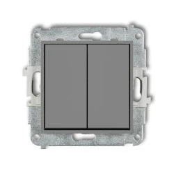 MINI Mechanizm łącznika jednobiegunowego ze schodowym (dwa klawisze bez piktogramów, osobne zasilanie) szary mat 27MWP‑10.21