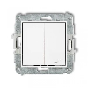 MINI Mechanizm łącznika jednobiegunowego ze schodowym w stylu amerykańskim (dwa klawisze bez piktogramów,wspólne zasilanie) biał