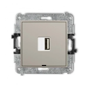 MINI Mechanizm ładowarki USB pojedynczej USB A, 5W max., 5V, 1A, bez pola opisowego taupe 60MCUSBBO‑1