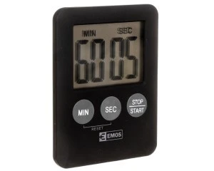 Elektroniczny minutnik TP202 marki EMOS to urządzenie należące do oferty katalogowej firmy EMOS. Pochodzi z serii programatorów i zegarów sterujących. Produkt może pracować jako minutnik lub stoper i jest zasilany za pomocą baterii napięciem 1,5 V. Ma pamięć ostatnio ustawionej aktywności i posiada funkcję odliczania czasu od 59 s do 99 min. Wykonano go z trwałego materiału i pomalowano na kolor czarny. Elektroniczny minutnik ma następujące wymiary: 70 mm x 55 mm x 7 mm. Na jego tylnej stronie znajduje się magnes, który ułatwia mocowanie produktu.