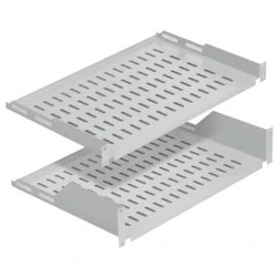 Półka 19” o wysokośći 1U przeznaczona do montażu w szafach teleinformatycznych wyposażonych w 2 profile RACK.