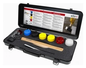 Zestaw młotków zawiera osiem wymiennych końcówek o zaokrąglonym kształcie. Za pomocą dołączonego sześciokątnego klucza trzpieniowego można szybko i łatwo wymieniać te końcówki, w zależności od zastosowania.