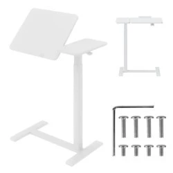 Pomimo swojej mobilności, biurko wyróżnia się solidną i stabilną konstrukcją. Stelaż wykonano z wytrzymałych materiałów, co gwarantuje długą żywotność produktu i bezpieczeństwo podczas pracy. Maksymalne obciążenie wynosi 5 kg – to wystarczająco, by pomieścić laptopa, myszkę, dokumenty czy notatnik. Całość osadzona jest na ukrytych kółkach, które umożliwiają łatwe przemieszczanie stanowiska między pomieszczeniami. Dzięki temu biurko doskonale sprawdzi się nie tylko w biurze domowym, ale również w salach konferencyjnych, szkołach, studiach projektowych czy placówkach medycznych.