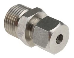 Złączka zaciskowa Stal nierdzewna RS PRO z gwintem równoległym BSPP. Od RS PRO wysokiej jakości 303 złącze zaciskowe ze stali nierdzewnej lub dławik tłokowy do mocowania sondy termopary lub RTD (detektor temperatury oporu) w sposób bezpieczny do złączy technologicznych, takich jak płyty kołnierzowe i terminowości. Ten element sprężający wykonany ze stali nierdzewnej zapewnia także szybki i wygodny sposób mocowania głowicy na odpowiedniej głębokości zanurzenia w procesie pomiaru. Jak działa przyłącze sprężania?. Złączka do ściskania składa się z zewnętrznej nakrętki ściskającej i wewnętrznego pierścienia do ściskania lub nasadki ferrutowej, zwanej również "oliwą". Wewnętrzny gwint złączki jest wkręcany w termikę lub przegrodę czołową. Następnie sonda jest umieszczana w otworze u TOP złączki na żądaną długość. Zewnętrzna nakrętka zaciskowa jest następnie dokręcana, co powoduje ściśnięcie jej wokół zewnętrznej osłony sondy. Sonda jest następnie przytrzymywana w bezpiecznym miejscu, a uszczelka jest mocowana. Charakterystyka i zalety. Mocuje połączenie sondy w terminarzu lub przegrodzie czołowej Szybka i łatwa regulacja długości zanurzenia czujnika Oporność do zastosowań ciśnieniowych BSPP wątek równoległy 303 stal nierdzewna zapewnia trwałość i odporność na korozję. Zastosowanie. Te urządzenia ściskające są używane do mocowania termopar w przegrodach, czujników uszczelniających w naczyniach i zabezpieczania sond w zasiewach cieplnych lub osłonach cieplnych. Akcesoria. Nakrętki zabezpieczające są dostępne dla tych złączek Numer fabryczny ; 762-1171 762-1171 to nakrętka zabezpieczająca złączki BSPP 1/8 Numer fabryczny ; 762-1174 762-1174 jest przeciwnakrętką dla złączki BSPP 1/4 Numer fabryczny ; 762-1178 762-1178 to nakrętka zabezpieczająca dla złączki BSPP 1/2