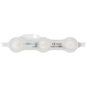 Ekonomiczny, trójdiodowy moduł LED. Koreańskie diody o wysokiej skuteczności charakteryzujące się szerokim spektrum zastosowania. Stopień ochrony IP68 –zapewnia całkowitą pyłoszczelność i ochronę przed długotrwałym zanurzeniem w wodzie. Możliwość stosowania wewnątrz, jak i na zewnątrz.