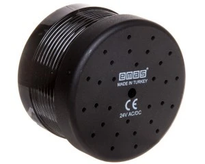 Buzzer do kolumn świetlnych o średnicy 70mm. Napięcie zasilania 24V AC/DC. Natężenie dźwięku 90dB, sygnał przerywany.
