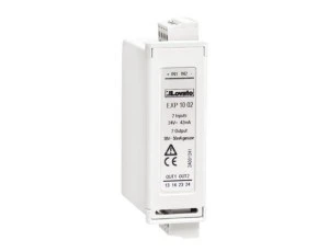 The EXP10 02 includes 2 isolated digital input and 2 isolated static output protected and independent of each other. At the input connector side, also an isolated continuous power supply is also available for the connection of various digital input types, such as: contact, NPN and PNP open collector and active sensors with digital output.