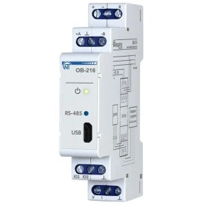 Programowalny moduł I/O OB-216 umożliwia podłączanie praktycznie dowolnych czujników (analogowych, cyfrowych, impulsowych itd.), konwertowanie sygnałów z ww. czujników na Modbus RTU RS-485 w celu ich późniejszej obróbki przez urządzenia nadrzędne, programowanie wyjścia przekaźnikowego w zależności od mierzonych wartości za pomocą bezpłatnego oprogramowania producenta. OB-216 posiada złącze Micro USB, co umożliwia bezpośrednie podłączenie do komputera bez konieczności stosowania przejściówek RS-485 na USB.