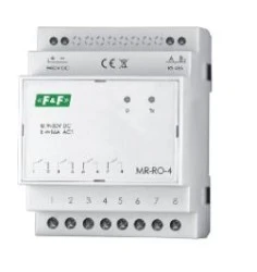 Moduł rozszerzeń wyjść przekaźnikowych MR-RO-4 posiada cztery sterowalne wyjścia przekaźnikowe (styki separowane). Każde z wyjść pracuje niezależnie zgodnie z nastawionym trybem pracy i przypisanymi do niego parametrami.