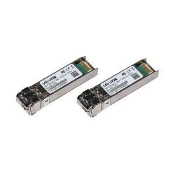 Zestaw Mikrotik XS+2733LC15D zawiera dwa jednomodowe moduły SFP+ przeznaczone do stosowania jako para w celu uzyskania szybkości transmisji danych do 25Gb/s dzięki nowo dodanej obsłudze SFP28. Ten zestaw modułów może być używany na dystansie do 15 km na pojedynczym kablu optycznym.