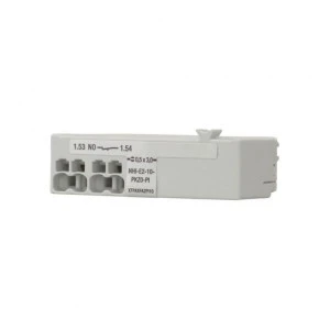 Moduł styków pomocniczych Eaton EP-401017 (NHI-E2-10-PKZ0-PI) to przedni, pojedynczy styk 1NO z zaciskami push-in przeznaczony do współpracy z wyłącznikami PKZ i listwami serii Moeller NHI. Produkt służy do realizacji sygnałów pomocniczych w obwodach sterowania.