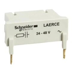 Układ tłumiący do ochrony cewki styczników Easy TeSys Control LC1E06-E95. Do stosowania przy napięciu obwodu sterującego 24-48 V AC, zapewnia ochronę RC ograniczającą napięcie przejściowe do maks. 3 Uc. Montaż zatrzaskowy z przodu stycznika, podłączenie do zacisków śrubowych cewki. Zapewnia stopień ochrony IP 20 zgodny z normą IEC 60529. Zgodny z Green Premium (RoHs/REACh)