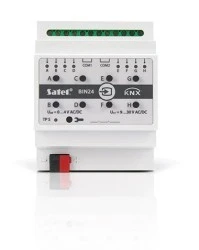 KNX-BIN24 Satel, będący modułem rozbudowy markowych systemów automatyki budynkowej KNX. Przeznaczeniem modułu jest zmienianie sygnałów elektrycznych w telegramy sterujące kompatybilne z urządzeniami KNX w systemie, umożliwiając na zastosowanie szerokiej gamy urządzeń wyzwalających, np. przycisków lub czujników.