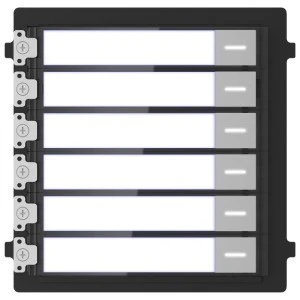 DS-KD-KK to nowoczesny wizytownik przeznaczony do pracy w ramach modularnych systemów wideodomofonowych Hikvision. Urządzenie wyposażone jest w sześć eleganckich miejsc na wizytówkę oraz sześć mechanicznych przycisków wywołania. Moduł wizytownika Hikvision umożliwia wywołanie abonenta i realizację rozmów wideo z dowolnym użytkownikiem objętym zasięgiem wspólnego systemu domofonowego. Wbudowane podświetlenie LED zapewnia komfort obsługi urządzenia w warunkach nocnych oraz umożliwia łatwą identyfikację lokatora z listy. Solidna, odporna na niekorzystne warunki atmosferyczne (IP65) obudowa zapewnia niezawodność i trwałość na długie lata użytkowania. Do poprawnej pracy modułu wymagane jest doprowadzenie zasilania z modułu stacji bramowej DS-KD8003-IME1 / DS-KD8003-IME2 lub z innego modułu (przez port RS485).