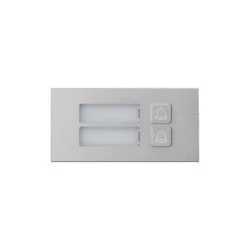 Pojedynczy moduł z 2 przyciskami wywołania do nowego systemu modułowego IP BCS. Umożliwia rozszerzenie ilości obsługiwanych mieszkań w systemie. Możliwość przypisania dowolnego kodu wywołania (numeru lokalu) do każdego przycisku niezależnie. Front wykonany z aluminium. Przeznaczony do montażu w ramkach dwu lub trzy modułowych BCS-RA2-N oraz BCS-RA3-N. Zasilanie i transmisja danych z moduł kamery BCS-PAN-KAM-N za pomocą dostarczonej wraz z ramką taśmy modułowej.