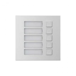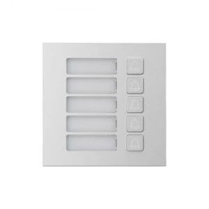 Podwójny moduł z 5 przyciskami wywołania dla nowego systemu modułowego IP BCS. Umożliwia rozszerzenie liczby obsługiwanych mieszkań w systemie. Możliwość przypisania dowolnego numeru telefonu (numeru lokalu) do każdego przycisku z osobna. Front wykonano z aluminium. Przeznaczony do montażu w ramach dwu lub trzy modułowych BCS-RA2-N i BCS-RA3-N. Zasilanie i transmisja danych z modułu kamery BCS-PAN-KAM-N za pomocą taśmy modułowej dostarczanej z ramą.
