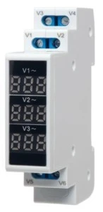 Modułowy miernik napięcia SPMV3 firmy SPAMEL to urządzenie przeznaczone do pomiaru napięcia trójfazowego w zakresie od 80 do 500 VAC. Miernik posiada kompaktową konstrukcję o długości 90 mm, co ułatwia jego montaż w rozdzielnicach i szafach sterowniczych. Urządzenie wyświetla zmierzone wartości napięcia na czytelnym wyświetlaczu LCD.