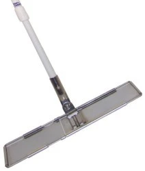 RS Głowica ramy do pomieszczeń czystych Mop. Rama z obrotową mopem ze stali nierdzewnej z regulowaną polimerem Niska profilowana rama do mopów zapewnia łatwe i skuteczne czyszczenie trudno dostępnych powierzchni Szybki docisk zwalnia mechanizm blokujący ramy, aby wymienić mop lub główkę gąbki