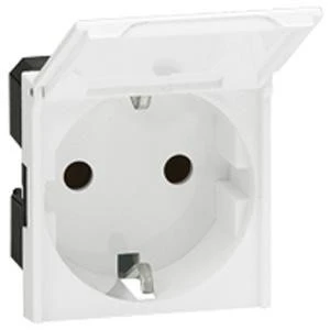 Gniazdo 2P+Z SCHUKO 16 A - 250 V~ - 2 moduły - z klapką - Zaciski automatyczne - Biały antybakteryjny