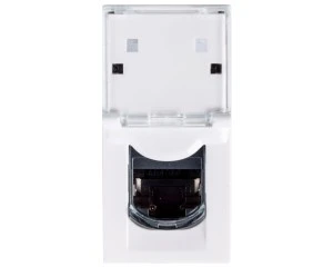 Nowoczesna linia Mosaic opiera się na innowacyjnym osprzęcie przeznaczonym do stosowania głównie w budynkach użyteczności publicznej, na przykład w hotelach, biurach, szpitalach czy też w obiektach handlowych. Seria została wyprodukowana przez znany oraz ceniony koncern Legrand - jednego z czołowych producentów aparatury zabezpieczeniowej niskiego napięcia. Tradycja marki sięga już 1996 roku. Prezentowane gniazdo pojedyncze zostało wyposażone we wtyk zaciskany RJ45 i przypisano je do kategorii 5e. Gniazdo zostało przeznaczone do sprawdzonego, trwałego, a przede wszystkim bezpiecznego montażu podtynkowego za pomocą sposobu na pazurki oraz na śrubę. Ze względu na stosunkowo niski stopień ochrony - IP20 - osprzęt powinien być instalowany wyłącznie w suchych pomieszczeniach wewnątrz budynków. Gniazdo wykonano z niezwykle trwałego i odpornego na ścieranie tworzywa termoplastycznego. Wspomniany rodzaj tworzywa nie przywiera ponadto do szkła, metali oraz do innych tworzyw. Prezentowane gniazdo jest dostępne w uniwersalnym białym kolorze z matowym wykończeniem powierzchni.