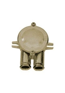 Solidna, mosiężna, natynkowa puszka z pokrywą, 2 wyjścia z dławikami.