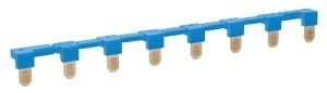 Złącze 8-polowe ZGZP80-8 BE (kolor niebieski) dedykowane do przekaźników interfejsowych w technologii push-in: PI84, PI85, PI84P, PI85P. Mostkuje wspólne sygnały wejść (zaciski cewki A1 lub A2), maksymalny dopuszczalny prąd 10 A / 250 V AC, możliwość połączenia 8 gniazd lub przekaźników.