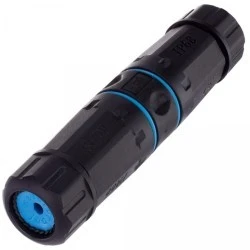 Solidne, skręcane złącze hermetyczne IP68 przeznaczone do łączenia dwóch ekranowanych przewodów sieciowych zakończonych męskimi wtyczkami RJ45 8p8c kategorii 6. Montaż odbywa się bez straty klasy transmisji. Konstrukcja łącznika (kształt tuby) umożliwia wykonanie szybkich i pewnych połączeń. Instalacja odbywa się bez narzędzi. Idealne rozwiązanie, aby szybko połączyć i schować dwa przewody sieciowe. Znakomicie sprawdza się również jako element do przedłużenia przewodu lub jako zestaw naprawczy.