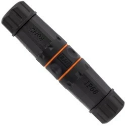 Solidne, skręcane złącze hermetyczne IP68 przeznaczone do łączenia dwóch okrągłych przewodów teleinformatycznych tzw. skrętek.