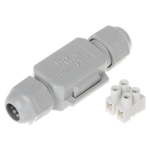 Mufa przelotowa wypełniona żelem uszczelniającym. Produkt spełnia klasę szczelności IP68. Puszka doskonale sprawdza się w miejscach o dużym zawilgoceniu oraz pod ziemią (na przykład w elektrycznych instalacjach ogrodowych).