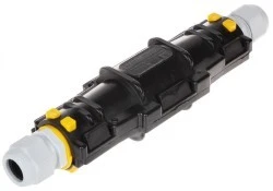 Mufa przelotowa do wypełnienia żelem uszczelniającym będącym w komplecie. Innowacyjny system pakowania dwuskładnikowego żelu uszczelniającego pozwala na szybkie i dokładne wymieszanie składników bez użycia dodatkowych pojemników oraz narzędzi. Szybka i czysta instalacja z możliwością łatwego usunięcia żelu oraz ponownego wykonania połączenia pozwala na wielokrotne użycie mufy.