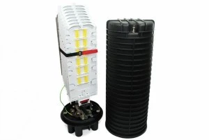 Mufa światłowodowa to urządzenie zaprojektowane do ochrony spawów włókien światłowodowych przed oddziaływaniem warunków atmosferycznych oraz przed zagrożeniami mechanicznymi. Konstrukcja i dodatkowe akcesoria umożliwiają montaż urządzenia w instalacjach napowietrznych, doziemnych i kanalizacyjnych. Mufa wyposażona została w 8 kaset (tacek) światłowodowych z możliwością umieszczenia do 36 spawów na każdej oraz posiadają regulowane/wyjmowane wsporniki spawów, które wykonane są z wysokiej jakości gumy aby lepiej trzymać zespawane włókno. Dodatkowo kasety wyposażone są w opaskę blokującą i system blokad, dzięki którym możemy bez problemu zablokować wybrane kasety i uzyskać swobodny dostęp do pozostałych kaset. Obudowa wykonana została z polipropylenu (PP), który gwarantuje odporność na promieniowanie UV, niskie i wysokie temperatury oraz substancje występujące w kanalizacji teletechnicznej. Urządzenie po zamknięciu jest hermetyczne, stopień ochrony to IP68 (6 - Ochrona pyłoszczelna, 8 - ochrona przed skutkami ciągłego zanurzenia w wodzie). U góry mufy został zamontowany odpowietrznik, pozwalający opróżnić mufę ze zbędnego powietrza po zamknięciu. Mufa wyposażona jest w 5 okrągłych portów o średnicy 35 mm i jeden port owalny (82x49 mm). W zestawie znajdują się dwie obejmy do montażu na słupie telekomunikacyjnym oraz wsporniki umożliwiający montaż naścienny.
