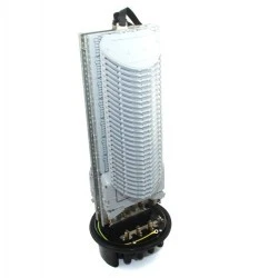 Mufa pionowa TELCOLINE 672F to urządzenie zaprojektowane do ochrony spawów włókien światłowodowych przed oddziaływaniem warunków atmosferycznych oraz przed zagrożeniami mechanicznymi. Konstrukcja i dodatkowe akcesoria umożliwiają montaż urządzenia w instalacjach napowietrznych, doziemnych i kanalizacyjnych. Mufa wyposażona została w 56 tacek (kaset) światłowodowych z możliwością umieszczenia do 12 spawów na każdej (podwójne ułożenie spawów). Wykonana została z polipropylenu (PP), który gwarantuje odporność na promieniowanie UV, niskie i wysokie temperatury oraz substancje występujące w kanalizacji teletechnicznej. Urządzenie po zamknięciu jest hermetyczne, stopień ochrony to IP68 (6 - Ochrona pyłoszczelna, 8 - ochrona przed skutkami ciągłego zanurzenia w wodzie). Mufa wyposażona jest w 16 okrągłych portów (8x18 mm/8x23 mm) i jeden port owalny (94x35 mm). W zestawie znajdują się kątowniki i wsporniki umożliwiający montaż naścienny.