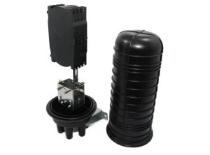 Mufa pionowa to urządzenie zaprojektowane do ochrony spawów włókien światłowodowych przed oddziaływaniem warunków atmosferycznych oraz przed zagrożeniami mechanicznymi. Konstrukcja i dodatkowe akcesoria umożliwiają montaż urządzenia w instalacjach napowietrznych, doziemnych i kanalizacyjnych. Mufa wyposażona została w 4 tacki (kasety) światłowodowe z możliwością umieszczenia do 24 spawów na każdej (podwójne ułożenie spawów). Wykonana została z polipropylenu (PP), który gwarantuje odporność na promieniowanie UV, niskie i wysokie temperatury oraz substancje występujące w kanalizacji teletechnicznej. Urządzenie po zamknięciu jest hermetyczne, stopień ochrony to IP68 (6 - Ochrona pyłoszczelna, 8 - ochrona przed skutkami ciągłego zanurzenia w wodzie). Mufa wyposażona jest w 4 okrągłe porty o średnicy 20 mm i jeden port owalny (33x63 mm). W zestawie znajduje się obejma do montażu na słupie telekomunikacyjnym, oraz przykręcany wsporniki umożliwiający montaż naścienny.