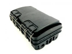 Mufa światłowodowa TELCOLINE GFP-16HG została zaprojektowana z możliwością montażu na podwieszanych kablach w sieciach napowietrznych. Posiada cztery wejścia na kable magistralne oraz 16 wyjść na kable abonenckie. Konstrukcja mufy umożliwia montaż 16 adapterów typu SC simplex lub LC duplex. Szczelna obudowa została wykonana z tworzywa PP odpornego na wodę, kurz, wilgoć, zanieczyszczenia chemiczne, promieniowanie UV oraz niską i wysoką temperaturę (-35°C...+70°C). Urządzenie posiada 1 odchylaną tackę światłowodową z możliwością ułożenia do 24 spawów. Mufa przystosowana jest do instalacji obudowy splittera 1:8. Konstrukcja pozwala na swobodny dostęp do środka mufy w przypadku konieczności serwisu, konserwacji lub instalacji nowych elementów. Maksymalna średnica na przewody wlotowe to 20 mm. Wszystkie wloty i wyloty posiadają gumowe uszczelnienia.