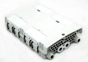 Mufo-przełącznica TELCOLINE zaprojektowana została do montażu naściennego lub na słupie telekomunikacyjnym. Posiada cztery wejścia na kable magistralne (w tym 2 dławikowe PG19), oraz 24 wyjścia na kable klienckie. Wykonana została na kompozycie tworzywa PC+ABS w kolorze czarnym, które chroni przed ciężkimi warunkami atmosferycznymi (temp. w zakresie -35°C ~+75°C, wilgoć, promieniowanie UV), substancjami chemicznymi oraz wszelkiego rodzaju zanieczyszczeniami i pyłami. Stopień ochrony dla urządzenia to IP65 (6 - Ochrona pyłoszczelna, 5 - Ochrona przed strumieniem wody lanym na obudowę z dowolnej strony). Wnętrze mufy wyposażone jest w odchylaną płytę na której znajdują się 24 otwory do montazu adapterów światłowodowych typu SC simplex lub LC duplex. Dodatkowe 3 miejsca na adaptery znajdują się z drugiej strony płyty. Miejsce pod płytą zagospodarowane jest na ułożenie do 24 spawów światłowodowych oraz organizację włókien i cienkich przewodów. Wyjścia na kable abonenckie wyposażone są w gumowe uszczelnienia oraz tulejki z tworzywa sztucznego zapewniające szczelność urządzenia.