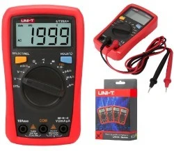 Nowoczesny, kieszonkowy multimetr UT33A+, o modnych i ergonomicznych kształtach. Dzięki małym wymiarom można go zawsze mieć przy sobie i wykorzystać w każdej awaryjnej sytuacji. Urządzenie posiada wyjątkowo rozbudowane zakresy pomiarowe i cechuje się dużą dokładnością. Obudowa zapewnia pewne przyleganie do dłoni.