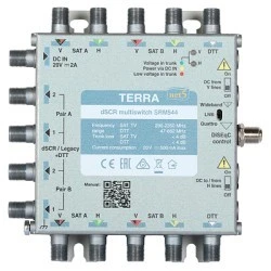 Multiswitch przelotowy SRM-544 R80544 to urządzenie, które umożliwia dystrybucję sygnału DVB-S/S2 z jednej pozycji satelitarnej (dwóch pozycji satelitarnych po zastosowaniu konwerterów typu wideband), telewizji naziemnej DVB-T oraz radia analogowego/DAB w oparciu o technikę cyfrowego układania kanałów. Multiswitch przelotowy SRM-544 R80544 posiada pełne wsparcie dla odbiorników pracujących w dwóch trybach dynamicznych: SCR (Unicable I - 8 User Bands) oraz dSCR (Unicable II - 32 User Bands). Wyposażony został w 5 wejść (cztery pary polaryzacja/pasmo (VL–HL–VH–HH) plus aktywny tor TV) oraz 2 pary wyjść: dSCR Out (umożliwiające niezależny podział sygnału RTV/SAT do max. 16 odbiorników przy pomocy rozgałęźników satelitarnych pracujących w paśmie 5-2400 MHz dla każdego z 4 wyjść zgodnie ze standardem EN50607)/Legacy Out (zwykłe wyjście, jak w konwerterze typu Universal lub w klasycznych multiswitchach służących do podłączenia klasycznego tunera satelitarnego). Wbudowany układ AGC (ang. Automatic Gain Control) odpowiednio koryguje wzmocnienie na wyjściu multiswitcha, tak aby zapewnić stały, zadany poziom sygnału.