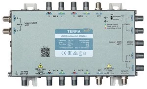 Multiswitch przelotowy SRM-564 R80564 to urządzenie, które umożliwia dystrybucję sygnału DVB-S/S2 z jednej pozycji satelitarnej (dwóch pozycji satelitarnych po zastosowaniu konwerterów typu wideband), telewizji naziemnej DVB-T oraz radia analogowego/DAB w oparciu o technikę cyfrowego układania kanałów. Multiswitch przelotowy SRM-584 R80584 posiada pełne wsparcie dla odbiorników pracujących w dwóch trybach dynamicznych: SCR (Unicable I - 8 User Bands) oraz dSCR (Unicable II - 32 User Bands). Wyposażony został w 5 wejść (cztery pary polaryzacja/pasmo (VL–HL–VH–HH) plus aktywny tor TV) oraz 3 pary wyjść: dSCR Out (umożliwiające niezależny podział sygnału RTV/SAT do max. 16 odbiorników przy pomocy rozgałęźników satelitarnych pracujących w paśmie 5-2400 MHz dla każdego z 6 wyjść zgodnie ze standardem EN50607)/Legacy Out (zwykłe wyjście, jak w konwerterze typu Universal lub w klasycznych multiswitchach służących do podłączenia klasycznego tunera satelitarnego). Wbudowany układ AGC (ang. Automatic Gain Control) odpowiednio koryguje wzmocnienie na wyjściu multiswitcha, tak aby zapewnić stały, zadany poziom sygnału.