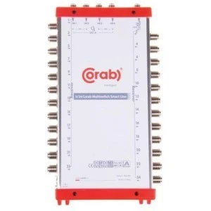 CORAB MULTISWITCH SMART LINE jest to urządzenie służące do rozdzielenia sygnału telewizyjnego, posiada 5 wejść: 4-y satelitarne i 1-dno naziemne oraz 24 wyjścia satelitarno-naziemne. Multiswitch posiada wewnętrzny zasilacz a wysokiej jakości obudowa gwarantuje wysoki poziom ekranowania. Urządzenie samodzielnie wykrywa czy dana antena jest aktywna czy pasywna poprzez odpowiednie dopasowanie napięcia.
