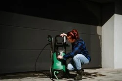 Myjka wysokociśnieniowa HPC170AI w zestawie otrzymała kilka wysokiej jakości końcówek w postaci pistoletu, dysz i szczotki, a także trwały wąż w oplocie. Dodatkowo dołączono adapter do akcesoriów oraz filtr wody.