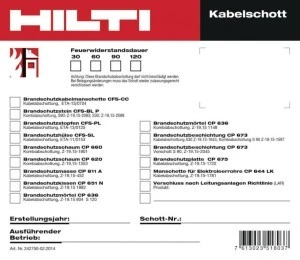 Oznaczenie zabezpieczeń ogniochronnych pozwalające na jednoznaczną identyfikację z wykorzystaniem oprogramowania Hilti Documentation Manager w celu monitorowania i inspekcji Grubość: 38 mm Kategoria dozownika: Nie dotyczy Długość: 44 mm Właściwości Prostsza koordynacja i konserwacja dzięki łatwiejszemu identyfikowaniu Kod QR do łatwego rejestrowania w oprogramowaniu Hilti do zarządzania dokumentacją Większa produktywność i łatwiejsza współpraca Aplikacje Tabliczki identyfikacyjne ułatwiają dokumentowanie montażu biernej ochrony przeciwpożarowej na potrzeby odbioru i konserwacji. Dzięki jednoznacznej identyfikacji każdego przepustu kabla/rury z zabezpieczeniem ogniochronnym można zapisywać harmonogramy konserwacji, dokładne położenie oraz szczegóły produktu. Po zapisaniu danych w oprogramowaniu Hilti Documentation Manager uzyskuje się natychmiastowy dostęp do istotnych informacji o poszczególnych zabezpieczeniach przeciwpożarowych w budynkach. Umożliwia to scentralizowanie ewidencji na potrzeby konserwacji oraz archaizowanie informacji na potrzeby przeglądów. Specjalnie zaprojektowane etykiety sprawiają, że w celu sporządzenia dokumentacji wystarczy zrobić zdjęcie smartfonem. Oprogramowanie Hilti Documentation Manager zapewnia dostęp do dokumentacji zabezpieczeń ogniochronnych praktycznie z dowolnego miejsca, przy użyciu komputera lub aplikacji mobilnej.