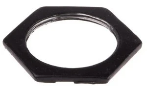 Przeciwnakrętki stalowe. Nakrętki zabezpieczające o skoku 1,5 mm, odpowiednie do wszystkich gwintowanych łączników i osprzętu przewodów ISO, mogą być również używane do ogólnej instalacji elektrycznej. Wymiary w poprzek: M16: 22 mm, M20: 27 mm, M25: 35 mm, M32: 41 mm