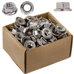 Nakrętka o wymiarze otworu M8, z kołnierzem z nacinaniem zapewniającym skuteczniejsze mocowanie elementów montażowych paneli fotowoltaicznych. Wykonana ze stali nierdzewnej A2, zgodnie z normą DIN 6923. Produkt jest został przystosowany do mocowania elementów konstrukcji pod panele PV, stosowany m.in. do montowania szyn montażowych do adapterów, uchwytów dachowych lub wsporników trójkątnych. Nakrętkę należy stosować do śrub M8 (sześciokątnych lub teowych).