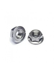 Produkt jest wykonany ze stali nierdzewnej i ma kształt sześciokątny oraz ząbkowany kołnierz. Średnica gwintu wynosi 10 mm, natomiast średnica kołnierza wynosi 25 mm.