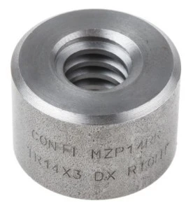 Nakrętki są przyspawane tylko do MIG, spawanie elektrod nie jest zalecane. Okrągła nakrętka stalowa. Stalowa nakrętka cylindryczna dla śruby z wylotem trapezowym, do mocowania lub małych ładunków, z ręcznym sterowaniem lub ruchem. Gwint jednogwiazdowy.