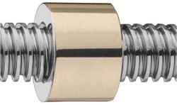 Nakrętka z okrągłym brązowym pierścieniem. Nakrętka z brązu cylindrycznego do śrub z ołowiu trapezoidalnego. Gwint początkowy pojedynczego punktu początkowego. Nadaje się do zastosowań przy niewielkich obciążeniach. Zaleca się regularne smarowanie w celu zapewnienia prawidłowego działania.