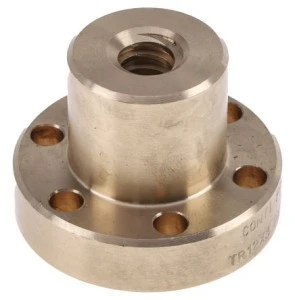 Brązowa nakrętka z kołnierzem. Nakrętka z kołnierzem na pojedynczy początek, śruby z łbem trapezoidalnym. Wykonane z brązu o dobrej odporności na zużycie i przeznaczone do pracy w ruchu ciągłym.